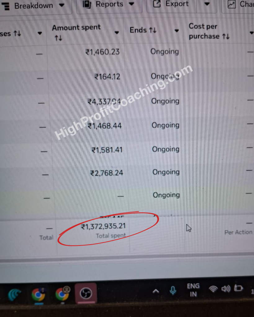 (Proof: Ads Manager screenshot showing ₹13.7L spend)
