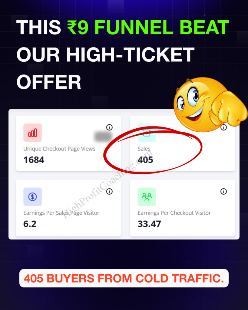 In most cases, the ₹9 offer alone is not designed to generate full profit. Its purpose is to acquire buyers at low cost and recover a portion of ad spend. Profitability typically comes from a combination of order bumps and backend offers. However, a well-structured funnel can significantly reduce acquisition cost and improve cash flow from day one.