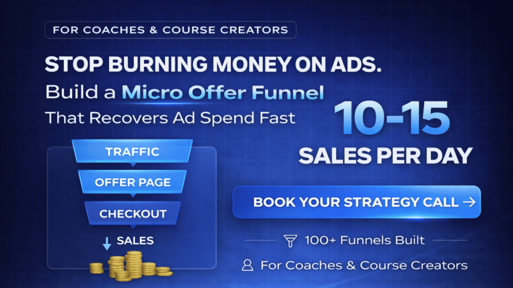 Micro offer funnel vs high ticket funnel is not about which one is better. It’s about where you are right now — your experience, your confidence, your budget, and your ability to sell. If you choose a funnel that doesn’t match your stage, you won’t scale, you’ll just waste money. Build the right structure first, then increase traffic. And if you’re not sure which funnel fits your situation, book a strategy call with us. We’ll review your offer, your goals, and your current level, and give you clear direction on what makes sense next.